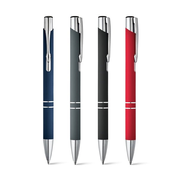 Caneta Alumínio Personalizada Jundiaí: Acabamento emborrachado material alumínio