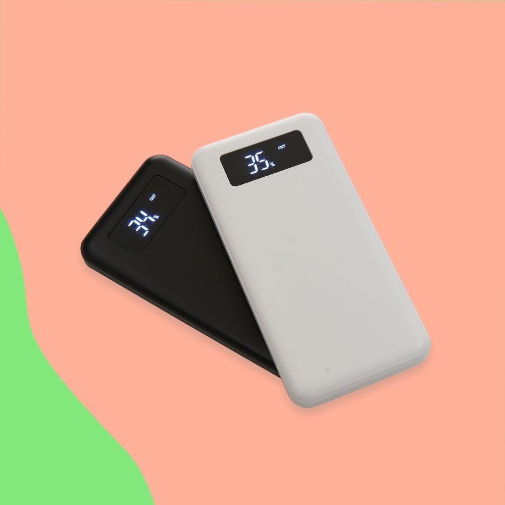 Carregador Portátil Personalizado Niterói : Bateria reserva para equipamentos com 10.000mAh e “display” digital que mostra a quantidade de carga disponível e potencia de saída. Possui 2 portas de entrada e 2 de saída. Carrega 2 aparelhos simultaneamente.