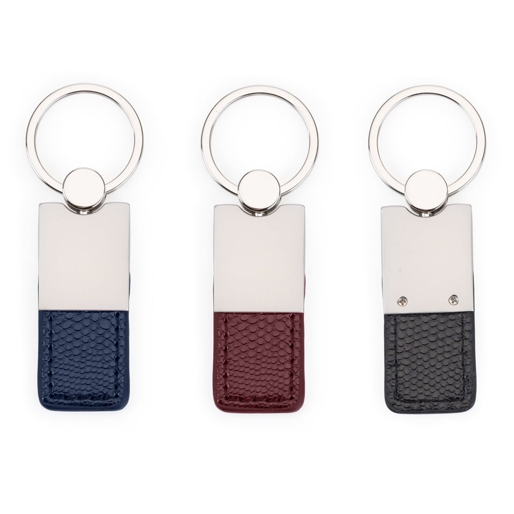 Chaveiro Em Couro Personalizado: Com detalhe inferior emborrachado. Suporte da argola giratório brilhante, frente do chaveiro lisa e verso com dois parafusos.