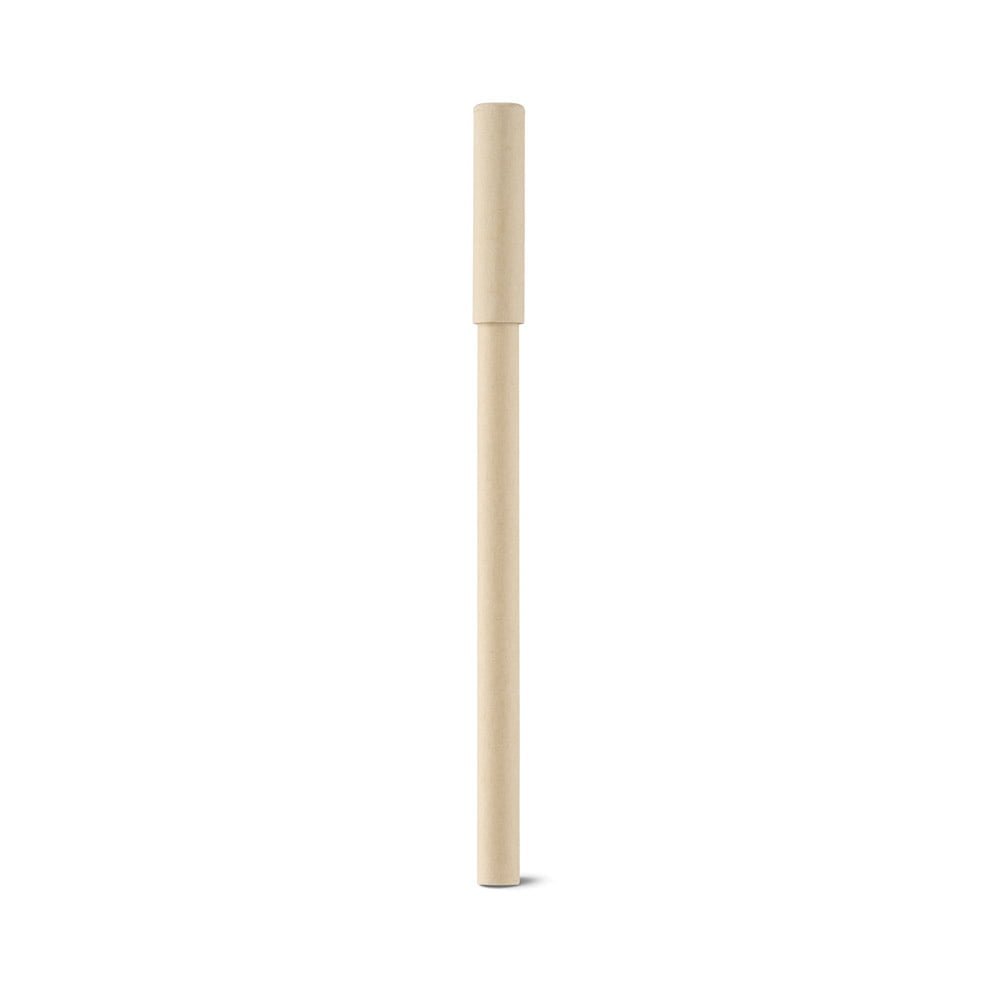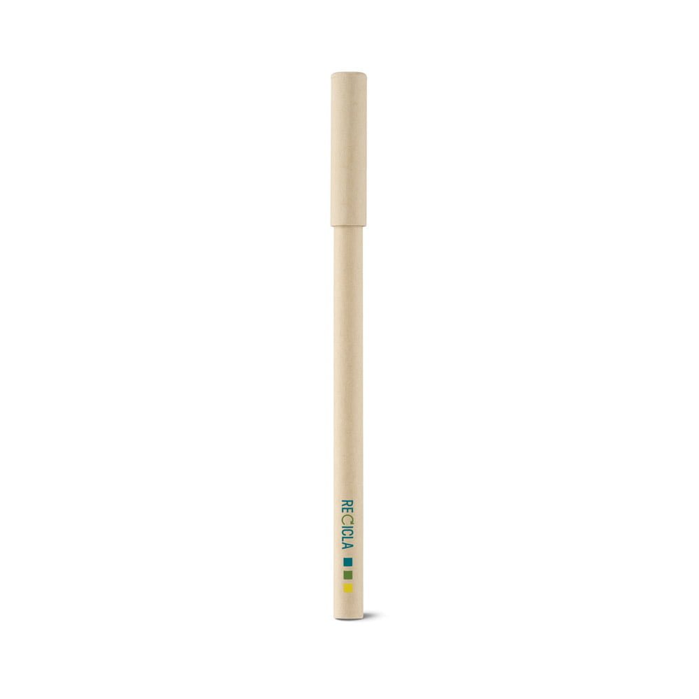 Caneta Esferográfica: Com tampa em papel craft e interior em papel de jornal reciclado.