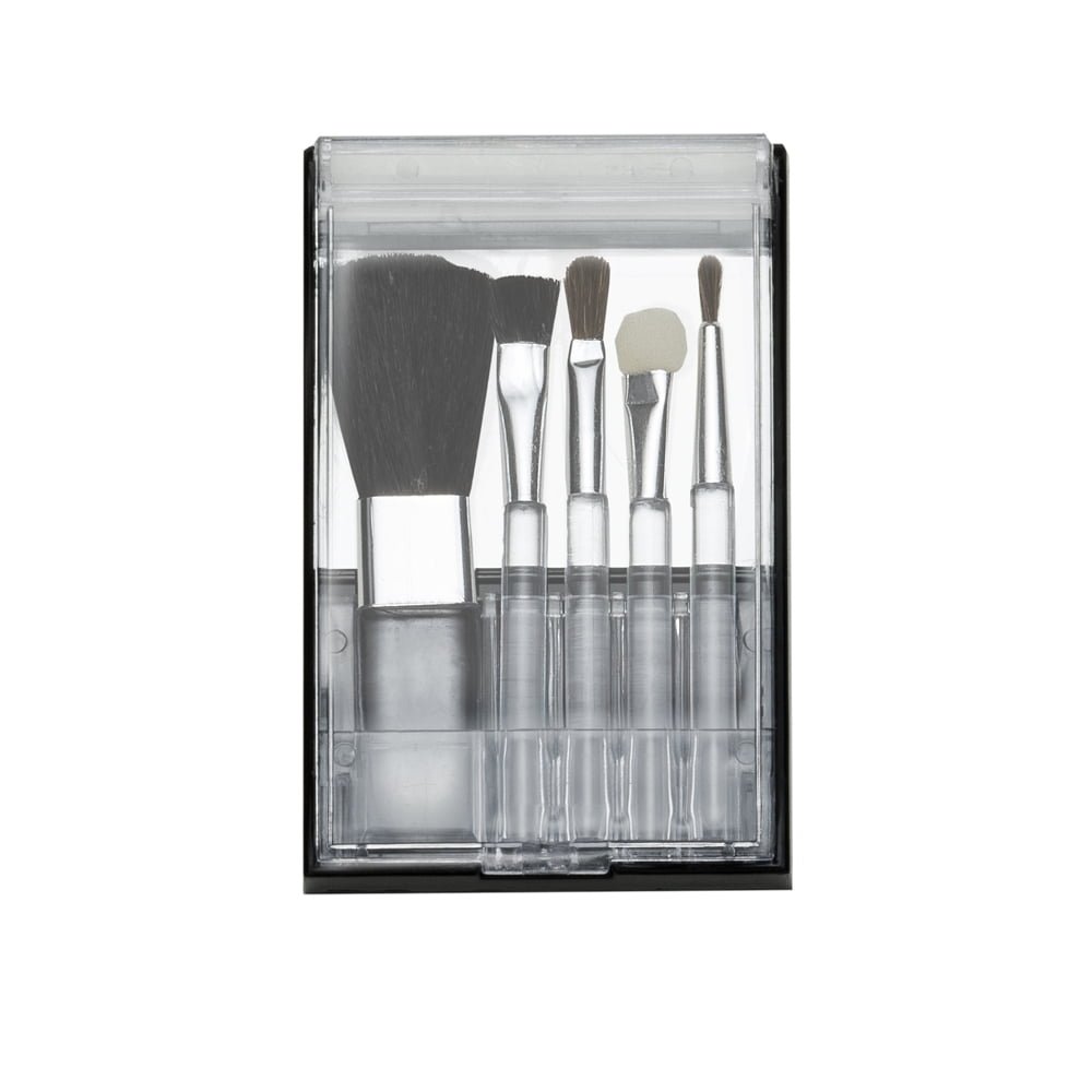 Kit Maquiagem Personalizado: Em estojo plástico com visor transparente. Parte interna acompanha um espelho, compartimento dos pincéis é inclinável.