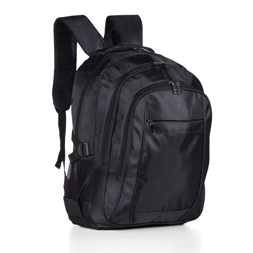 Mochila Nylon Personalizada Atacado: com compartimento para notebook. Compartimento grande com bolso interno para notebook 15.6 polegadas, dois compartimentos medianos, compartimento frontal e bolsos laterais de nylon. Possui duas alças de mão, sendo uma em nylon e outra com revestimento de espuma,alças laterais e alças para costa ajustáveis.