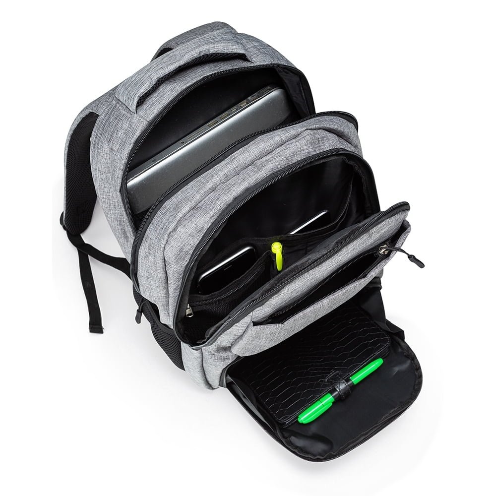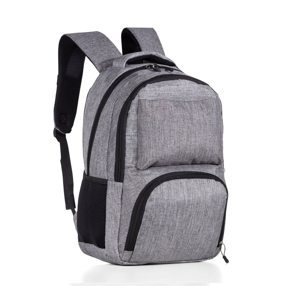 Mochila Para Notebook Personalizada Santos: Compartimento grande com bolso interno para notebook até 15.6 polegadas, compartimento mediano com divisórias para canetas, documentos, eletrônicos e compartimentos frontais superior e inferior. Tem bolsos laterais de malha, alça de mão e alças para costa ajustáveis – sendo estes revestidos com espuma para maior conforto. Acompanha plaquinha para personalização.