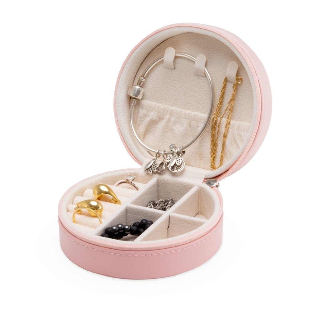 Porta Joias Personalizado: Porta joias de couro sintético com revestimento aveludado. Possui compartimentos internos para anéis, brincos, pulseiras e colares.